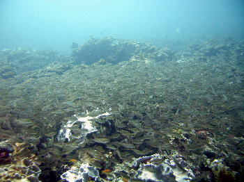 | グラスワールドでは クロホシイシモチがぐっちゃりと群れていました! わぉ〜すごいっ! |