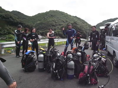 あれれ、山奥で… そうここは古座川水系の川です! 初のリバーダイビングの方もいらっしゃいましたが 水がきれいで、 お魚いっぱいのリバーダイングもなかなか 素敵でしたね(^‐^) |