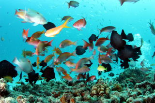 お魚だらけのこの写真、スゴイですね(*^_^*) さて、一体何種類の魚がこの一枚に写っているのでしょうか〜? 皆さん、分かりますか〜? |