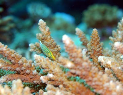 | もちろん可愛いお魚ちゃんもいっぱいいました! テングカワハギはペアでラブラブに泳いでいましたよ! |