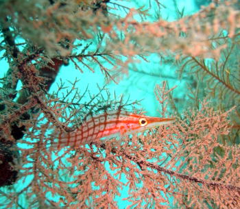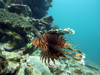 ブルーの水にふんわりと浮かぶ ハナミノカサゴが とっても気持ちよさそうでした! |