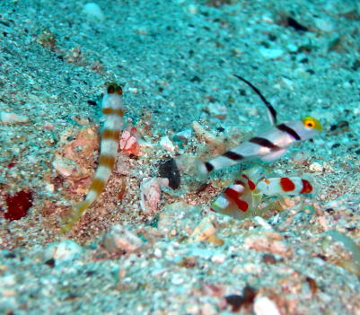 なんと同じ巣穴から、ヒレナガネジリンさんと ヤノダテハゼさんがっ! 他にもヤシャハゼが同じ穴から3匹でていたり… この季節は本当にハゼが熱いです! |
