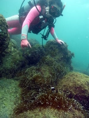 | 白崎になぜかいるハマクマノミにもご対面です! カラフルなお魚もいっぱいで 初めての和歌山の海を満喫(*^_^*) |