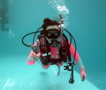 | 余裕の表情のプール講習 中性浮力も取れていて あっという間にスキルも終わりましたね(^о^) |