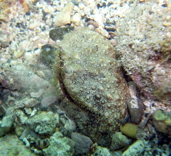 | 手のひらほどもある巨大ウミウシに 出会いました。 デンドロ・・・ 「何でしたっけ?(^◇^)」と言ってしまう 難しい名前が付いています。 |
