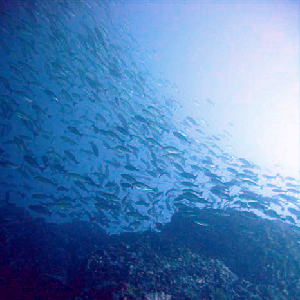 | 今回は足を伸ばして外洋へ!! エントリーすると、見てくださいこの群れ〜〜ヾ(^▽^)ノ イサキ!!イサキ!!イサキ!! 上から下からイサキの壁がワァーっと押し寄せて、 もう大興奮でしたよ♪ |