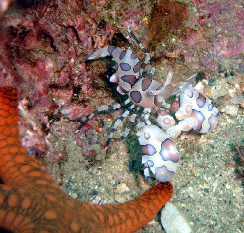 | フリソデエビ祭り! 大好物のヒトデと一緒にいました。 なんと1つのポイントの中で 3箇所にフリソデちゃんがいましたよ! |
