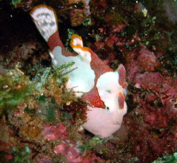 かわいらしい 赤白の クマドリカエルアンコウが居ました〜♪♪♪ おデコに可愛いエスカ(疑似餌)が ついていました! |