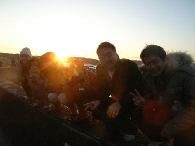 | そして、翌朝7時前には起きて、 潮岬の向こうから昇る初日の出を見ることが出来ました〜!! 幸先のいいスタート きっと2009年は素敵なことがいっぱいありますよ〜♪ |