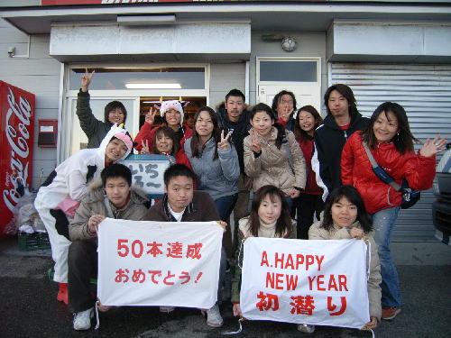 | 新年、明けましておめでとうございます♪♪ 本年もどうぞ宜しくお願いします〜\(^O^)/ ということで、年末年始は串本で水中カウントダウンしてきました(*^。^*) 若干、冬型の気圧配置で水面は波がありましたが、水中は透明度もよく、可愛いウミガメさんや、カエルアンコウ祭り、ウミウシ祭り、と生物満載でした(^O^)♪ 31日には、Mくんの50本記念もあり、大いに盛り上がりましたよ〜\(^O^)/ 水中カウントダウンの様子は、ビデオでも撮影してますので、またお店に見に来て下さいね! 1日の朝には、有志で初日の出をみて、初もぐり♪そして、お昼には、恒例のお餅つき大会も開催(*^-^*) 皆で、ペッタンペッタンついたお餅は本当に美味しいですね〜♪ 今年は、カウントダウンも無事でき、初日の出もキレイに見えて、 なんだかいい一年になりそうな気配です(*^-^*) 皆様、本年もどうぞよろしくお願いいたしますm(_ _)m |