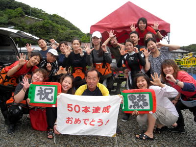 | 梅雨の晴れ間の広がった串本で潜ってきました〜! 今回は、50本記念を迎えられた方や、マイ器材&カメラデビューの方もおられましたよ! まずは、土曜日!快晴、暑い!熱い!一日になりました! マイ器材デビューでビーチダイビングのSさんは、いきなりテングカワハギの赤ちゃんをGET! そして、ボートチームの一本目の備前では、ヤシャハゼの赤ちゃんを発見!…が、トラギスで引っ込んでしまい、お客様は見れませんでした…(>_<) 他にも、可愛いサイズのイロカエルアンコウやクマドリカエルアンコウの赤ちゃんも見られましたよ!まさにベビーラッシュといった感じでした! 二本目のボートでは、癒しのシコロサンゴコースへ!アオウミガメさんもちゃんと居てくれました! 三本目は住崎へ!カゴカキダイやアマミスズメダイ、他にも群れがとにかくいっぱいでしたね(o^_^o) そして、可愛い1cmサイズのミナミハコフグちゃんも岩の隙間にいましたよ!最後には、オオモンハタとスズメダイがタコを追い払っているシーンまで見てしまいました〜ヾ(^▽^)ノ アフターダイブはもちろん温泉!そして美味しいものを食べてきました! 翌日の日曜日!朝方は雨が降っていましたが、ダイビング中はほとんど降ることもなく、帰る頃には青空も見えていました! まずは、N様の50本記念を備前でお祝い!!水中記念撮影&胴上げ大会開催しました(^о^)ダイビングを始めた当時からのご成長ぶりに、共に潜ってきたSTAFFも涙、涙…本当に嬉しい50本記念でした!これからもイロイロな海へどんどん潜りに行きましょうね〜っ!! そして、お祝いが終わると、前日トラギスの妨害にあったヤシャハゼの赤ちゃんに会いに行きました!またしても、妨害にあってしまいましたが、後でちゃんと会えましたね♪本当に小さなヤシャハゼでしたが、ちゃんとちいさなエビの赤ちゃんと一緒に仲良く暮らしているようでした! しばらく居ついて、大きくなってくれますように! 最後にアンカー周りでは、キビナゴの大きな群れに、巨大なブリが突進している姿も見られました! ラストダイブは、皆大好き、癒しのイスズミ礁へ!真っ白な砂地には、ベラギンポがカクレンボしています!ウミウシは数がだんだん少なくなってきましたね。チョウチョウウオは夏に向けて、少しずつ群れが大きくなっているようでした!青いフチドリのきれいなサザナミヤッコの成魚にもあえましたよ!さいごは、キビナゴの群れに囲まれながらのエキジットとなりました! 水温も暖かくなり、生物達はどんどん活発に!そして、イロイロなちびっ子も増えてきましたよ!暑くなって、そろそろ潜りたいな〜という皆様、ぜひ潜りに行きましょう(^-^) ご参加いただきました皆様、有難うございました! そして、N様 50本本当におめでとうございますヾ(^▽^)ノ |