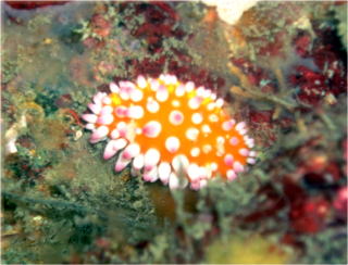 こちらは、ピンクと黄色の配色がラブリーな イガグリウミウシです! ぜひもっと可愛い名前をつけてあげたいウミウシですね(^_-)♪ |