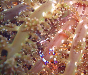 ご参加のK様 お写真です! イソギンチャクの隙間から アカホシカクレエビがこっちを見ています。 |