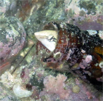 柏島2回目、というY様写真! ビンの口から 可愛らしく クロスジギンポが覗いています。 |