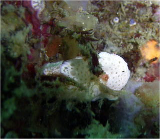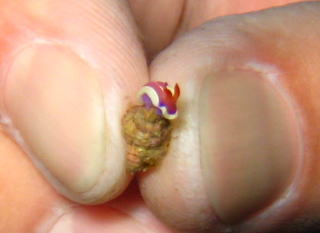 思いがけない発見は 超小さなフジイロウミウシ(^-^) 爪のサイズで、いかに小さいかわかりますね〜! |