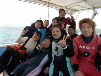 | 大型連休の後は、日帰りで串本へ行ってきました! 海は結構空いていて、快適〜♪ オープンウォーター講習2日目だったKさんは、後半のスキルを難なくクリア!あっという間に ダイバー認定でした!おめでとうございます! 既に、ボートダイビングもやる気満々で、準備準備〜♪ 少し透明度は落ちていましたが、ファンダイブチームの方はハナイカを発見! じっと見ていると、くるくる色が変わるハナイカは、とってもきれいで面白いんですよ。 動画でとっちゃった!というのは、Iちゃん! そして、初めてのボートダイビングに挑戦のKさんは、カエルアンコウ祭り&イエロージョーフィッシュに 釘付け!余裕の中性浮力で1ダイブを楽しまれました! なかには「実は・・・9ヶ月ぶりのダイビングやねん。」 という方も。でも、一緒に復習ダイビングした後は、楽しくファンダイビング!苦手だったスキルもこなして 嬉しい一日になりました! ご参加いただきました皆様、本当にありがとうございました! |