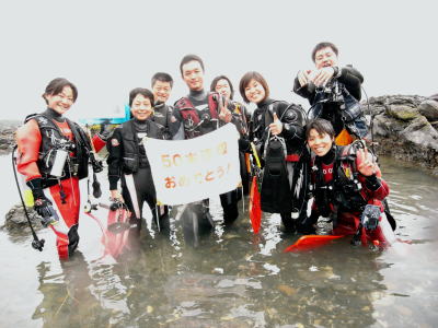 | 穏やかな週末の海、黒潮接近で水温も透明度もアップの串本へ行って来ました〜! 今回のツアーは、OW講習あり、アドバンス講習あり、そしてファンダイブあり、の盛りだくさんなメニューで、賑やかに楽しんできました(*^_^*) 初日は、最近発見されたNEWジョーフィッシュや、なぜか浅場でうろうろしているテングダイ、口内保育中のアオスジテンジクダイや、昨年から越冬したと思われるヤシャハゼさんなど、いろーんな生物に会えました!もう120本ほど潜られているOさんは、今回初のピカチューウミウシ&アオウミガメとのご対面で、大興奮&大満足でしたね♪これからも初体験がいっぱい待ってますよ〜! 備前では、Mさんの300本記念も盛大に行われ、記念撮影に記念胴上げと、大人数でお祝いしました! Mさんおめでとうございます!この夏は沖縄計画盛りだくさんで、楽しい夏になりそうですね♪ どうぞ宜しくお願いしますm(_ _)m 日曜のボートでは、ダイナイミックな地形を堪能&ウミウシパラダイスを満喫しましたね(o^_^o) ウミウシ大好きなOさんは、目がハートマークになっちゃうくらいの可愛いウミウシいっぱいでした! OW講習チームは、ビーチでしっかりスキルの練習p(^-^)q 初の水中体験でドキドキワクワク、そしてナマコだらけのビーチに「ギャーっ」という感じでしたが、最終的にはナマコちゃんともお近づきになれましたね!そして、なんと講習終了後のダイブでは、ボートダイビングも体験(^о^) 早速次のコースがスタートですね!まだまだ楽しい道未知の世界がいっぱい待ってますよ〜! AOW講習のIさんも、しっかり浮力コントロールの練習や、ナビゲーション、そしてナイトダイビングに、と新しい体験いっぱいでしたね!今回のスキルを忘れないように、また潜りにいきましょーう(^‐^) ご参加いただきました皆様、ありがとうございました! |