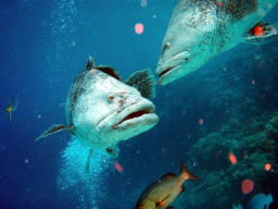 | 普通に大型ロウニンアジが泳いでいます! なんとも贅沢な。 |