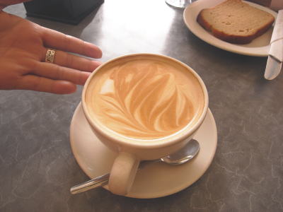 モーニングは近くのカフェで。 とにかくでっかいのがオージー流。 ミルクたっぷりで、模様も書いてあって 美味しかったです。 |