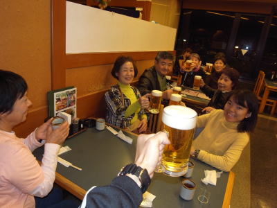 | 飛行機に乗る前に さっそくの乾杯! ばっちり飲んで、ばっちり食べて そして明日に備えましょう! |