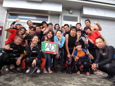 | AD講習のIさん&Sさんも無事講習修了しました! そして、Uさんは350本達成記念でした(^о^) これからも元気にもりもり潜り続けてくださいね〜♪ |