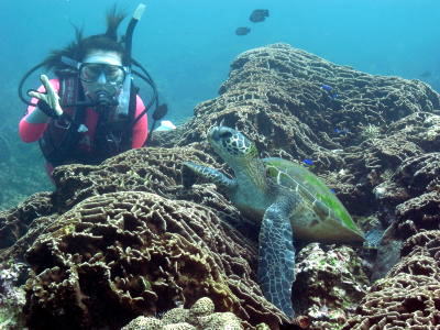 念願のウミガメにばっちり出会えたIさん 3日間で9ダイブ、と潜りまくりでしたね(o^_^o) ダイビングもすっかり上手になりましたね♪ これからはドンドン ファンダイブで腕を磨いて 来年には沖縄ダイブしましょうねヾ(^▽^)ノ |