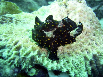 珍しい黒のクマドリカエルアンコウも 居ついてくれていますよ! 最終日にはクネクネ泳ぐ姿も見られました(^-^) |