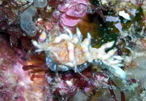ハクテンミノウミウシ〜!! キイロウミウシのそばでもぞもぞって動いたところを発見♪ 実は結構レアだったりします(^-^)v |