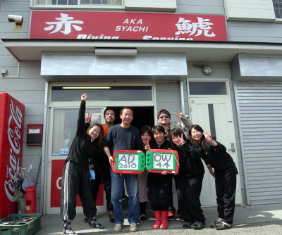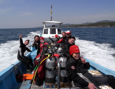 | 1ツアーで白浜もみなべも味わえて、一度で二度おいしい白浜みなべのツアーに行ってきました! 着いてみると、予想を超える素敵な海とお天気が待っていてくれて、ツアーが終わるころには、顔がこんがり・・・。 夏が近づいてきた感じがしましたよ〜ヾ(^▽^)ノ 初日はレディースで白浜へ!! 到着前は風が吹いている予報・・・でも、沈船に潜るべく白浜へ向かいます! 出港していく船は大きく波に揺られているように見えましたが、実際乗り込んでみるとへっちゃらな感じ♪ そして、沈船ポイントに到着〜〜♪ しかもエントリーしてビックリ!!あの大きな沈船が丸見えなんです〜ヾ(^▽^)ノ丸見えの沈船に大興奮で、さっそくやってしまいました・・・『タイタニックごっこ』。陸上では皆さんちょっと照れくさそうですが、水中に入ると恥ずかしさも吹き飛ぶのか、どうぞ〜と手招きすると、順番に船首へ♪ばっちり記念撮影して、お次は船内へ!大きなウツボがくつろいでいたり、沈船の周りにはいろんな種類のお魚たちが集まってきていましたよ〜 2本目は『マッチ』というポイントに!芸能人の近藤真彦さんにちなんでつけられた名前だそうで、興味津々で入ってみると、壁にはウミウシがたくさんついているし、大きく穴が開いたアーチにはハタンポがぎっしり☆☆向こう側からは光が差してきて、白浜にいながら沖縄気分まで味わえてしまいましたo(^o^)o ダイビングの後は温泉に入って、おいしい民宿のご飯をいただいて、 夕食の後はレディースツアーでしか話せないレディーストークが飛び交いましたよ! そして、2日目はみなべへ移動!! 起きた瞬間から最高のお天気で、テンションも上がる上がる♪そして、海も穏やか! 1本目は超有名ポイント『ショウガセ』へ!目指すはオオカワリギンチャク!! ドロップオフの方へ泳いでいくと、見えました〜!!黄色い絨毯♪水底がネオンイエローに輝いていましたo(^o^)oあまりの美しさに40メートルの水底に吸い込まれてしまいそうでしたが、いかんいかん!と自分に言い聞かせながら、上からじっくり黄色の絨毯によいしれました☆その後も、いろんな生物たちが現れて大忙しの1本でした(*^_^*) 2本目・3本目もイサキの群れが通り過ぎて『おぉ〜!!』って興奮してみたり、キンギョハナダイの乱舞に『癒されるな〜』とほのぼのしたり、大きなアーチをくぐって冒険気分を味わってみたり、ドンドン湧き出てくるウミウシに吹き出してしまったり・・・o(^o^)o盛りだくさんのダイビングになりましたよ♪ ご参加いただいた皆様、ありがとうございました!! |