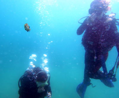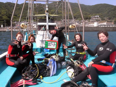 初めてのボートダイビングにチャレンジ!! エントリーのときは『キャ〜〜』と叫びながら・・・ でも、無事に1ダイブ潜りきりました〜! お疲れ様でした! |