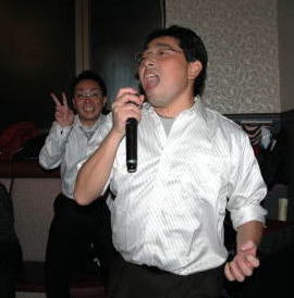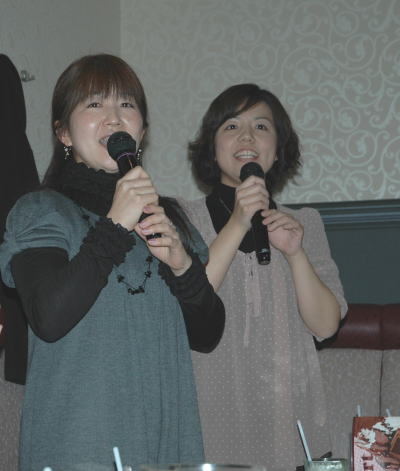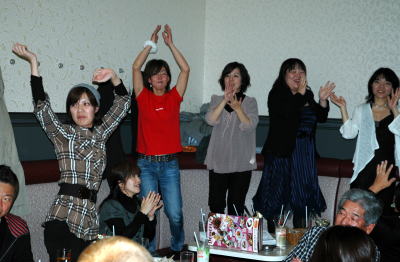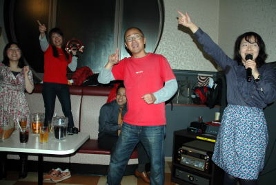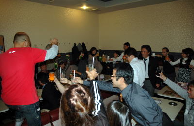 ![]() パーティーの興奮冷めぬまま、カラオケ大会に突入!! さぁ〜盛り上がっていくぞぉ〜〜〜〜!!!! 乾杯ヽ(´ー`)ノ この後は、みんなで歌いまくりです♪ |