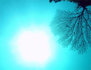 | 出雲ビーチも透明度抜群!! リトル沖縄という名前がピッタリの水中でした(o^_^o) ウミウチワの向こうから太陽の光が差して とってもきれいでした!! |
