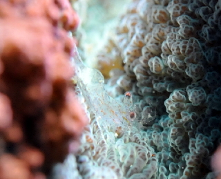 風が強く、西側のポイントはクローズ(>_<)ということで、 こんな時に強い味方の『出雲ビーチ』へ!!! 出雲ビーチにはレアものがたくさん♪ まずは、透明のワライヤドリエビです(^о^) |