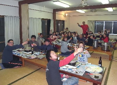 | 夜はみんなで大宴会〜〜(^о^) 潜り倒した体を、おいしいお鍋であたためました!! とにかく食べて・食べて・食べて お腹がパンパンではちきれそうに・・・(>_<) |