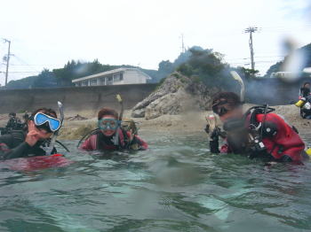 | 潜るぞお〜 水中に入ると軽い軽い〜 陸では自分の体の重さにびっくり! |