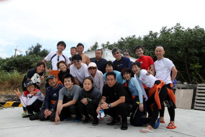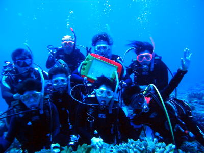 | 海の日、ということで久米島には多くのダイバーが。 せっかくなので、皆さんで記念撮影です(*^_^*) |