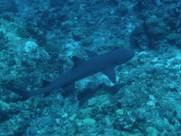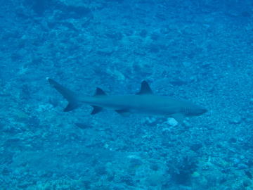 せっかくなので、トンバラで記念撮影! …と思ったら、なんと下の写真のホワイトチップが 二匹ほどうろうろ(^o^) いきなりの大物の登場に皆様、 大興奮でしたよヾ(^▽^)ノ |
