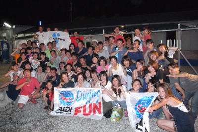 | 潜った後はやっぱりBBQ!! たっぷり潜って、たっぷり食べて 幸せ満開な夜ですよ〜〜 新メニューを待ちわびる皆様と一枚☆☆ |