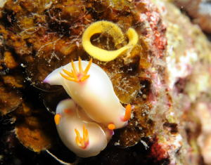 ゾウゲイロウミウシさん どうやら出産直後だったご様子! きいろのキレイな卵が真横に♪ |