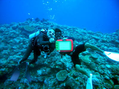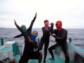 | そして、水中でも5レンジャーと共に 記念撮影です! 青い海、大物に、サンゴに、癒される砂地 思いっきり満喫の4日間でした! |