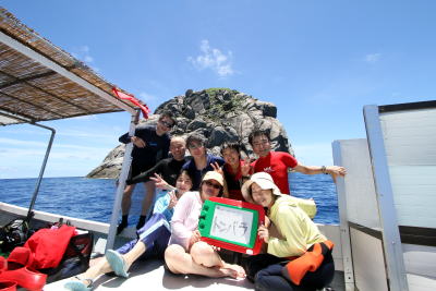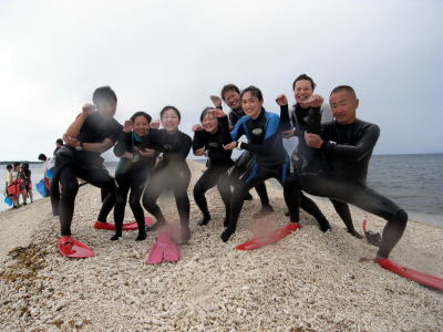| 今年は、毎年恒例のリクエストツアーで、久米島へ行ってきました! お天気もよく、海もよく、最高に楽しい4泊5日で、皆様潜った本数は、2・4・3・3のなんと12ダイブヾ(^▽^)ノ 毎日変化する風のおかげで?!北から南まで色々なポイントを満喫できましたね〜! 7/15(木) @ウーマガイ:まずはチェックダイブもかねて。ドロップオフにカスミチョウチョウウオの群れるポイント。が、しかーし、さすが皆様、ほとんどが500本前後のダイバーなので、いきなり深場のスミレナガハナダイをチーッェクしにいきました!しっかりサロンパスを確認&撮影して、ドロップを流していくと、途中で、イソマグロも1匹登場!通りすがりだったので、すぐに行ってしまいましたが、何かが起きるのを予感させる1ダイブでした! :カスミチョウチョウウオ群れ・キンギョハナダイ群れ・スミレナガハナダイ・ハナゴンベ・イソマグロ・ハナゴイ群れ・ヒオドシベラの幼魚・クマザサハナムロ・ゼブラハゼ・カスリフサカサゴなど Aイマズニ:さて、早速ですが、イマズニへ!もちろん、ここはギンガメアジ〜!!!ということで、エントリー後、ギンガメを探します(o^_^o) さぁ、どこだ〜、とまわっていくと、いました!!ギンガメアジの群れ!!でも、ちょっとバラケ気味?!すると、そこへMr.ヨーゼフのTさんが、ぐるぐる〜っっと泳ぎ回りながら、なんとギンガメアジを集めていくのです〜ヾ(^▽^)ノまさに、その姿は「ヨーゼフ」そのものっ!(…ということで、愛称はヨーゼフに決定!Tさん、きっとそう呼ばれたのは生涯初めてでは?にっこり笑ってこたえてくれたヨーゼフTさん、有難うございました!) しばし、ギンガメを楽しんだあとは、逆サイドへ行ってみました。すると、いました〜っ!!!今度は大きなかたまりになっています!その数は、ざっと数えて1000匹くらいヾ(^▽^)ノ全然逃げないので、またまたしばし、ギンガメアジ撮影大会&たわむれターイムっ(*^_^*) いやぁ、何百本潜った皆様も初めて見るギンガメの大群に大興奮&大満喫の1ダイブになりました! :ギンガメアジ1000匹、カスミアジ、アカククリ、クマザサハナムロ、アカネハナゴイ、タカサゴなど 夜は、一番近い居酒屋さんへ!ここはあげたての自家製かまぼこが最高でしたね♪もちろん、皆さん美味しい泡盛を楽しまれていましたよ! 7/16(金) Bさて、二日目ももちろん快晴♪まずはトンバラザシへ!ここは、ちょうどトンバラをさすような割れ目があるんだそうです。ここは、地形と、ウミウシ探し〜!ちょっと珍しいウィランイボウミウシや、アカネコモンウミウシの近似朱、ミゾレウミウシの群れ?などがいましたよ!さぁ、次はなんとBIGポイント トンバラへしゅっぱーつ!!! :アカククリ、ハナビラクマノミ、セジロクマノミ、ヒラムシ、マダラタルミ、ゼブラハゼなど。 Cさぁ、いよいよBIGポイント トンバラへ!のんびり船旅を楽しみながら、はるか遠くに見えるトンバラを目指します!だんだん近づいてくると、その岩は巨大で、何かが起きそうな雰囲気♪夏場は南風が吹きやすいので、これない日も多いんだそうですが、ラッキーにも潜りにいけました! エントリーして、下で集合写真っ、と思ったら、早速のホワイトチップリーフシャークの登場です(^o^)1匹か、と思いきや2匹のホワイトチップがう〜ろうろしていましたよ!そして、さすがトンバラっ!という青い海で、気分は上々です↑↑ 記念撮影も終わって、さぁ大物〜♪と泳いでいくと、まずはホソカマスの群れが見えてきました!50匹はいるでしょうか。なかなかの迫力!さらに進んでいくと〜、でました〜!グルクンに突っ込むイソマグロ達!!ダイバーのことなんてまるきり無視で縦横無尽に泳ぎ回るその様はなかなか圧巻でした! そして、最後には、これまた出ましたギンガメアジの大群っ!!前日よりも数は少なめでしたが、それでも300以上はいただろうなぁヾ(^▽^)ノ近くまで接近もできたので、大迫力でしたよo(^o^)o さすが、さすがのトンバラに、皆様、大喜びでエキジットしてきました(o^_^o) D北原灯台:この日の3本目は、透明度のよさそうな北側のポイントへ行ってみることに。30分かけてぐるっと島を回りこんでいきました。途中には、久米島の絶景が広がっています。ポイントについて、下をみてみると、透き通った水♪テンションがあがります! エントリーしてドロップオフ方向へ。すると、ナポレオンちゃんがさーっと行き過ぎました!見逃してしまった方もいましたが、沖縄で見るナポレオン、かなり久々かも〜(^o^) 大きなアーチには、Nさんの大好きな「クロナマコ」もいてくれて、よかったですね〜o(^o^)o 意外にも?!久米島はナマコが少なめなんですよね。 :ナポレオン、カスミチョウチョウウオ群れ、クマザサハナムロ群れ、ナンヨウハギ、アカハチハゼ、サザナミヤッコ、タテジマキンチャクダイなど。 E堂崎:この日はなんと4ダイブ♪ここはカメさんポイントだそうです!浅場を泳いでまわると、何匹かのアオウミガメが泳ぎまわり、姿は確認でき