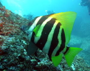 島廻りでは こ〜んなに近くまでテングダイが大接近!! |