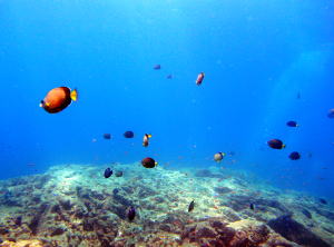根の上は、天国のような癒しの光景が 広がっていました♪ シラコダイにキンギョハナダイの群れ〜 そして、どこまでも見えてしまうほどの 抜群の透明度! はぁ〜〜幸せっヽ(´ー`)ノ |