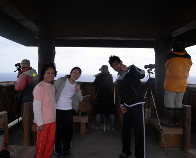 | ホエールウォッチングの当日! 出港前に島の展望台から、クジラをチェック☆ 調査の方から『親子クジラがいるよ!』と情報をGET!! 期待が膨らみますo(^o^)o |