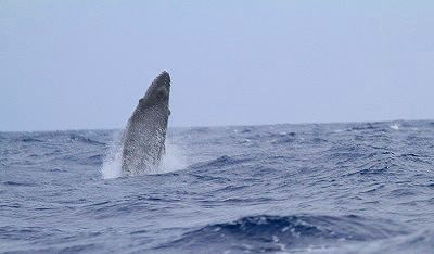 | そして、その子供クジラはまるで、遊んで、遊んで〜と言わんばかりに ブリーチを元気に連発してくれました!!! 人間もクジラも子供は皆元気いっぱいなんですね〜o(^o^)o → ![]() せーの〜 えいっ ↓ ← ![]() 気持ちいい〜♪ どうだぁっ そんな子クジラの無邪気な声が聴こえてきそうでした! |