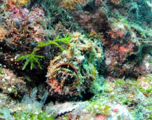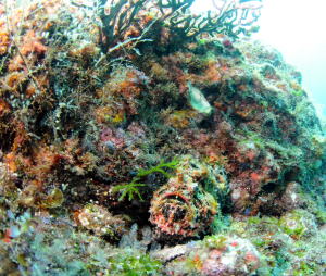 この画面にカエルアンコウが隠れていますよ〜。 完全に岩と同化中ヽ(´ー`)ノ ヒントは真ん中右より、下の方です!! |
