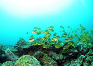 | グラスワールドのカゴカキダイの群れ!! 散らばっていたカゴカキダイもレンズを向けられると そわそわと集まってきて 大きな群れになりました〜(^_-) 撮られるってわかっているんでしょうか? |