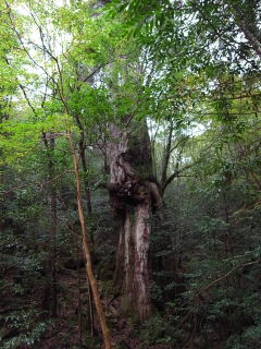 | さて、ここからはNさん撮影の写真です! 一眼レフを首からさげて 登山ボーイファッションに身を包み 万全の体制で臨んだ縄文杉トレッキングの始まり、始まり〜 ちなみにこの写真は三代杉と言いまして、 |