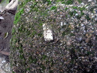 | これはガイドさんが教えてくれた 花崗岩の中にある正長石! 屋久島の岩をよーく見ると こんな四角い石がたくさん入っていますよ! |