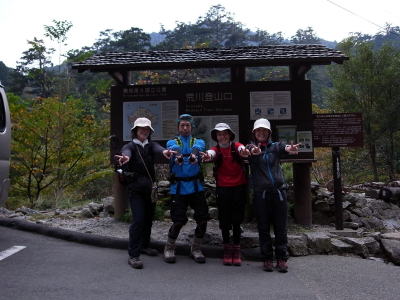 そして、荒川登山口にいよいよ到着でーす!! 達成感いっぱいで皆でピースサインv (^-^)v また来年もぜひこの素晴らしい大自然を 満喫しにきましょうね〜ヾ(^▽^)ノ |